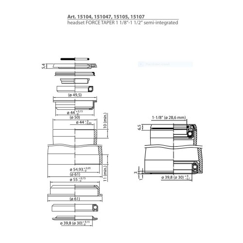 Krmilni Ležaj FORCE TAPER Pol-Integriran. 56mm